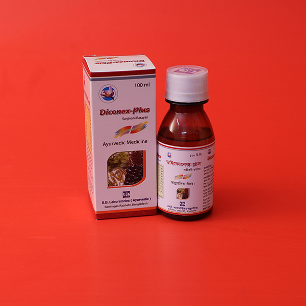 ডাইকোনেক্স-প্লাস মূল উপাদান : প্রতি ৫ মিঃ লিঃ নির্যাসে রয়েছে অশ গন্ধা ০.২১ গ্রাম আলকুশি ০.২১ গ্রাম শতাবরী ০.২১ গ্রাম বেড়েলা ০.২১ গ্রাম দ্রাক্ষা ০.২১ গ্রাম জাতী ফল ০.১০ মি.গ্রা. গুড়ত্বক ৯.২০ মি.গ্রা. এলাচ ৯.২০ মি.গ্রা. নাগকেশর ৯.২০ মি.গ্রা. কেশর ৯.২০ মি.গ্রা. ও অন্যান্য উপাদান সমুহ সূত্র : বাংলাদেশ জাতীয় আয়ুর্বেদিক ফর্মূলারী।