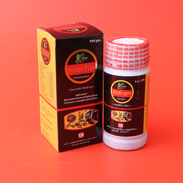 হার্বো-প্লাস মূল উপাদান : প্রতি ৫ গ্রামে আছে বিদারীকন্দ ০০.৪৩ গ্রাম জায়ফল ৩১.৮৩ মি.গ্রা. দারুচিনি ৩১.৮৩ মি.গ্রা. লবঙ্গ ৩১.৮৩ মি.গ্রা. পিপুল ৩১.৮৩ মি.গ্রা. মরিচ ৩১.৮৩ মি.গ্রা. আদা ৩১.৮৩ মি.গ্রা. শিমুল ৩১.৮৩ মি.গ্রা. অশ্বগন্ধা ৩১.৮৩ মি.গ্রা. এবং অন্যান্য উপাদানে প্রস্তুত